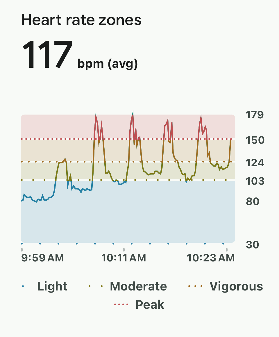Finished my sprint repeat workout @ 13.58 MPH. That is a 4:26 pace! Brutal.